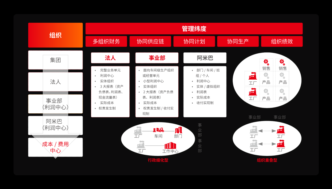 用友U9 cloud支持成長(zhǎng)型企業(yè)從集團(tuán)到法人、事業(yè)部、阿米巴、成本中心等多層次精細(xì)化核算需求,激發(fā)各級(jí)組織的活力,支撐企業(yè)整理效益最大化的目標(biāo)實(shí)現(xiàn)。